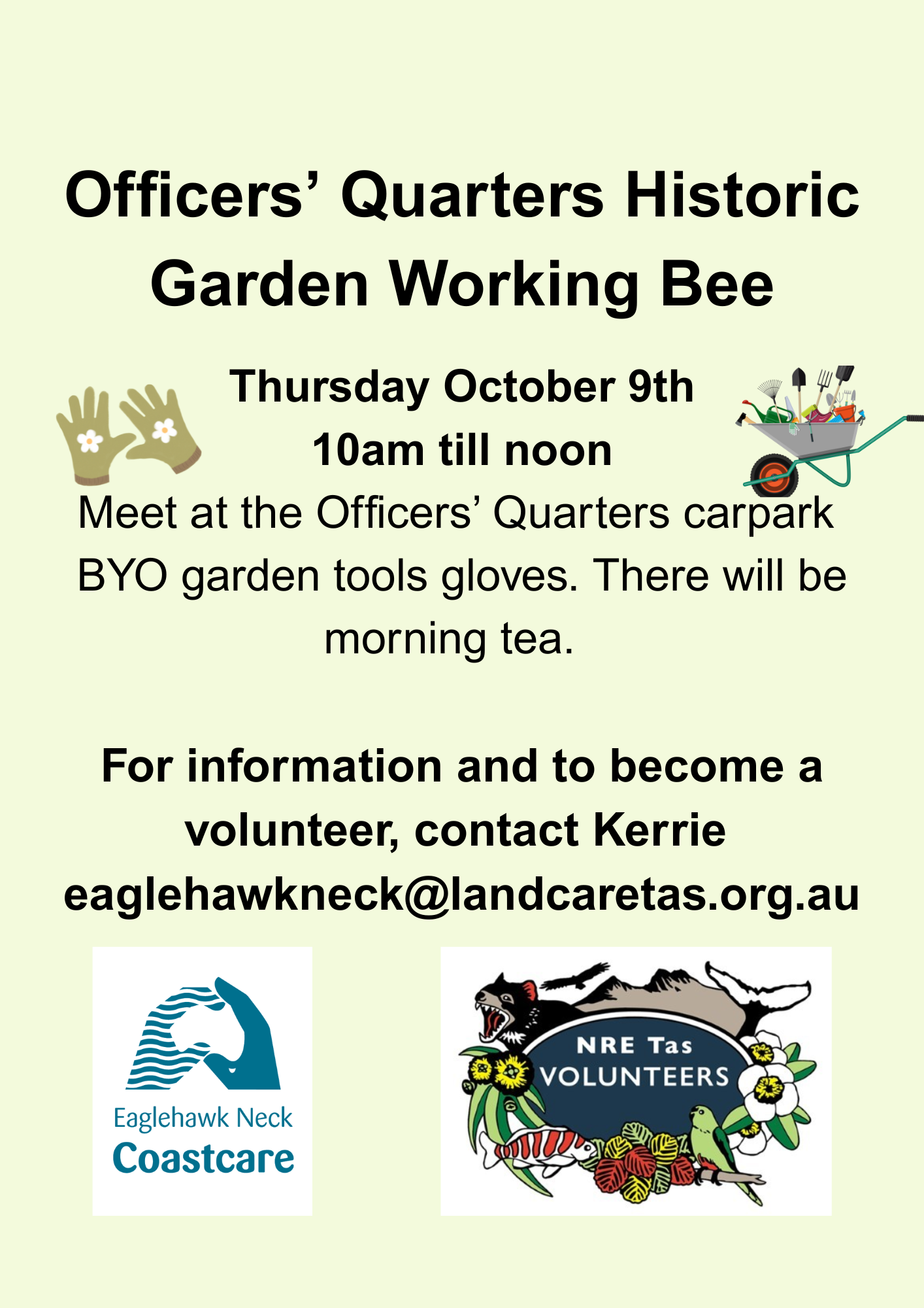 Thursday Oct 9th Officer Quarters working bee, 10am-12 midday.